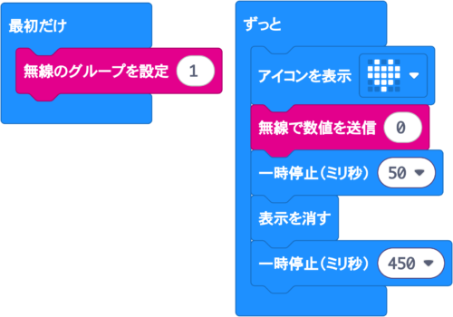 もう1台のマイクロビットに入れておくプログラムはこちらです。