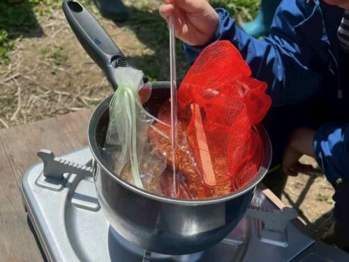 選別が終わった種もみは、60℃のお湯に10分程度浸して消毒します。