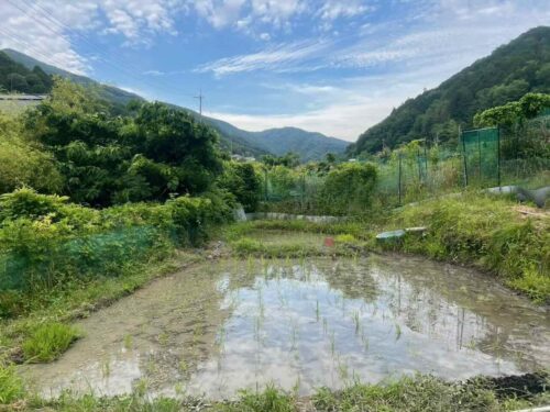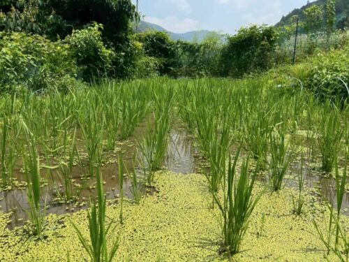 畑のすみには小さな水田エリア(ミニたんぼ)をつくり、自然農での稲作も体験しています。